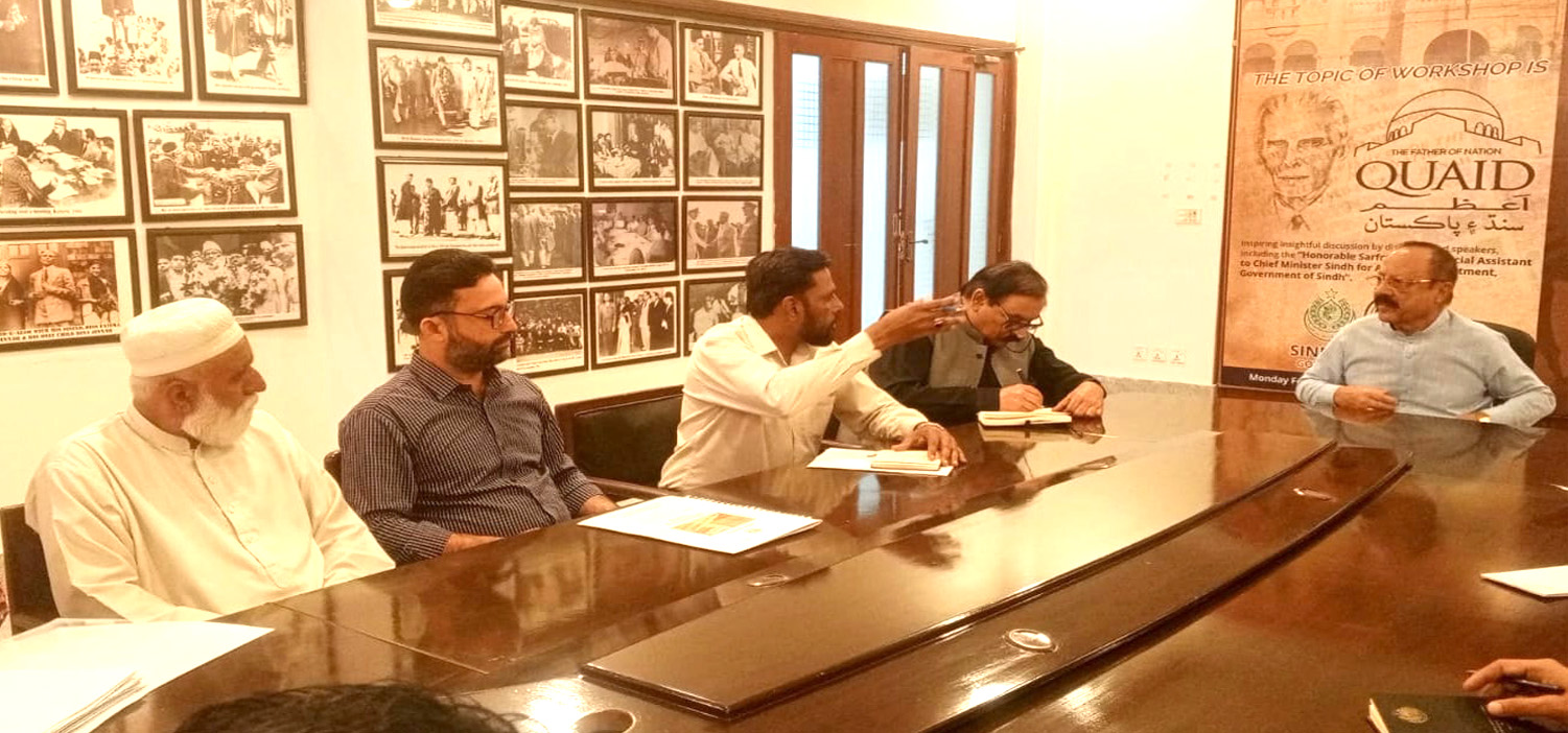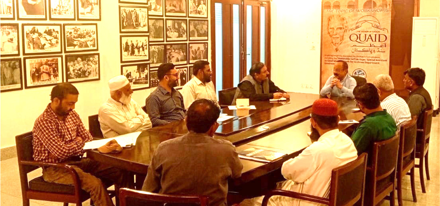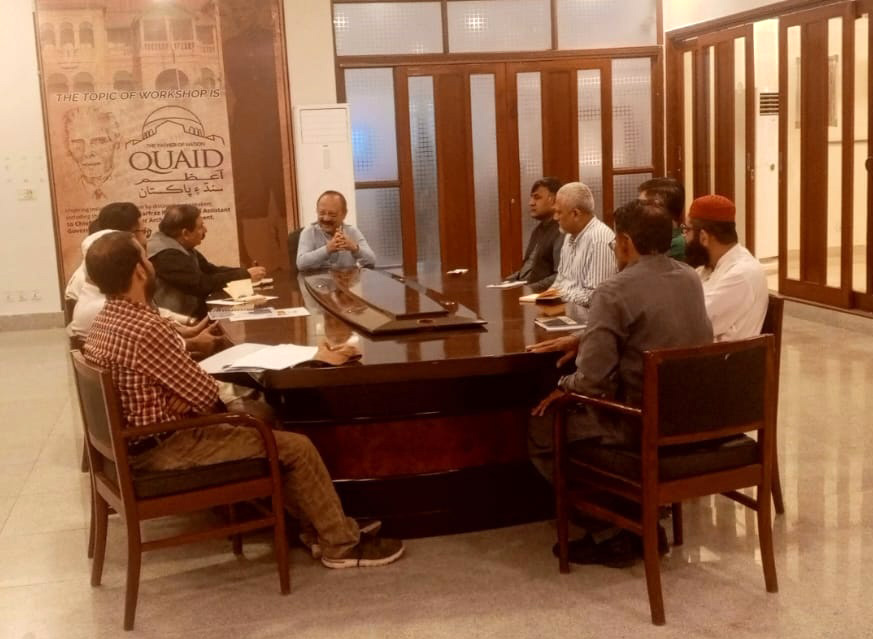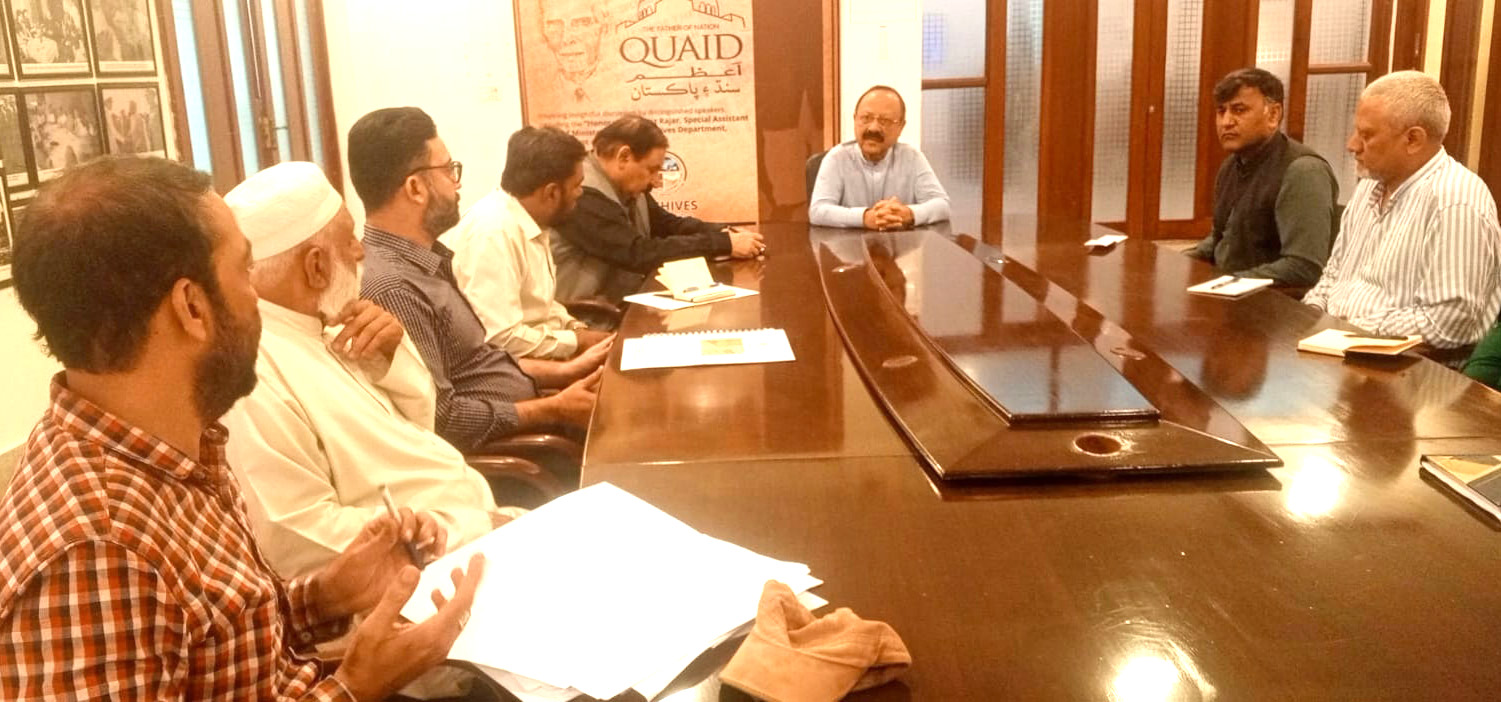 A meeting was held today at the Sindh Archives Meeting Room with the Special Assistant to the Chief Minister of Sindh for Archives Department, Sarfraz Rajar, along with the Director of Archives, Deputy Director and other officers. During the meeting, Special Assistant to the Chief Minister Sindh, Sarfraz Rajar inquired about the monthly progress and assigned a special task. He directed the Archivist, Research Officer and the IT Team to provide daily updates on social media, ensuring that the public can access comprehensive information about the history of Sindh and related Archival Records.