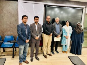The Sindh Archives Department’s Microfilming/Reprography Section’s AMF Officer, Mr. Hassan Jamil Abbasi, was invited as a Guest Speaker from Engr. Khan Sarim Yaseen – ILMA University’s Faculty of Computer Science and Software Engineering Department for a session on the topic “How to do Image Processing Virtualization”. Dr. Raja Sohail, Engr. Candar Kumar, Engr. Khan Sarim Yaseen, Dr. Nabila, and Ma’am Kanwal thanked the Sindh Archives Department and Mr. Hassan Jamil Abbasi. Finally, Mr. Hassan Jamil Abbasi was presented with an Certificate of Appreciation from Engr. Khan Sarim Yaseen – ILMA University’s Faculty of Computer Science and Software Engineering Department. (Watch Videoclip) Sindh Archives Official YouTube Page.