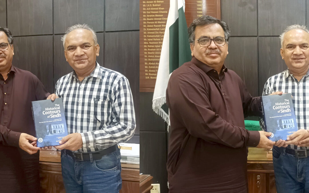 A Memorandum of Understanding (MOU) was signed between the M.H. Panhwar Institute of Sindh Studies, Jamshoro and the Culture, Tourism, Antiquities and Archives Department, Government of Sindh to facilitate the Digitization of Records. Dr. Zaffar Junejo and Mr. Atta Chopan from the Sufism University, Bhit Shah visited the Sindh Archives to discuss the digitization process with the Director of Archives and the Digitization Team, as part of this initiative. At the end of the meeting, the members of Sufism University presented a book as a gift to S. M. Mehdi Shah, Director of Archives.