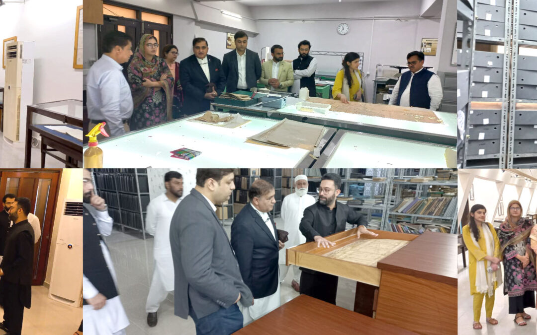 The batch of probationary officers from the 30th Specialized Training Program of the Commerce and Trade Group (CTG) along with Mr. Qaddafi – Director, visited the Sindh Archives Department, Government of Sindh. They were warmly welcomed by Mr. S.M Mehdi Shah – Director Archives and his team, who provided insightful information about the Archives. During the visit, the group had the opportunity to explore the Conservation Laboratory, Newseum Gallery, and Stack Area. They expressed great satisfaction with the conservation, and digitization efforts undertaken by the department. The officers commended the entire staff for their hard work and dedication. At the conclusion of the visit, the officers shared their thoughts and reflections in the visitor book, highlighting their positive experience at the Archives Department.